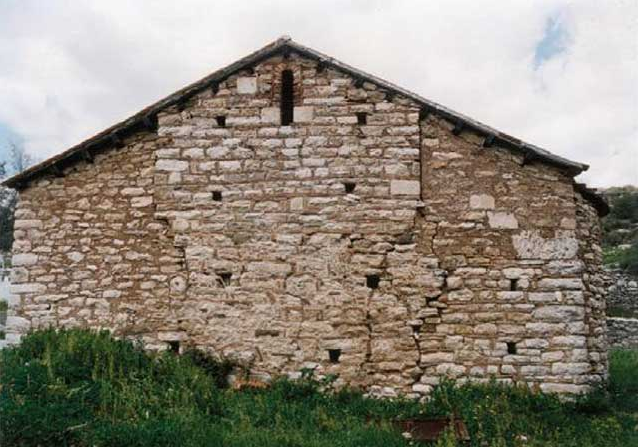 Die Kirche ist eine Kirche mit kreuzförmigem Dach, mit einem einheitlichen Raum und halbkreisförmiger Nische im Bema. Sie unterzog sich viele nachfolgende Eingriffe, welche auch die erste Höhe der Kirche beschränkt haben. Die Wände der Kirche sind nach dem byzantinischen mit Ziegeln eingeschlossenen System gebaut, ohne aber sehr akkurat zu sein. Zu ihrer Herstellung wurde auch antikes Baumaterial benutzt. Charakteristisch sind die sechs Säulen, die in die Wände aufrecht auf der Nordseite der Kirche eingebaut sind. Eine andere Säule steht auf der Südseite. An dem Bogen steht ein kleines Fenster, das die einzige Lichtquelle der Kirche ist.