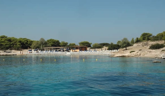 Οι παραλίες έχουν βαθιά, καθαρά νερά, ενώ το νησί είναι πευκόφυτο, με οργανωμένη αμμουδερή παραλία και πολλά άλλα σημεία για μπάνιο, ψάρεμα και πεζοπορία μέσα στα πεύκα.
