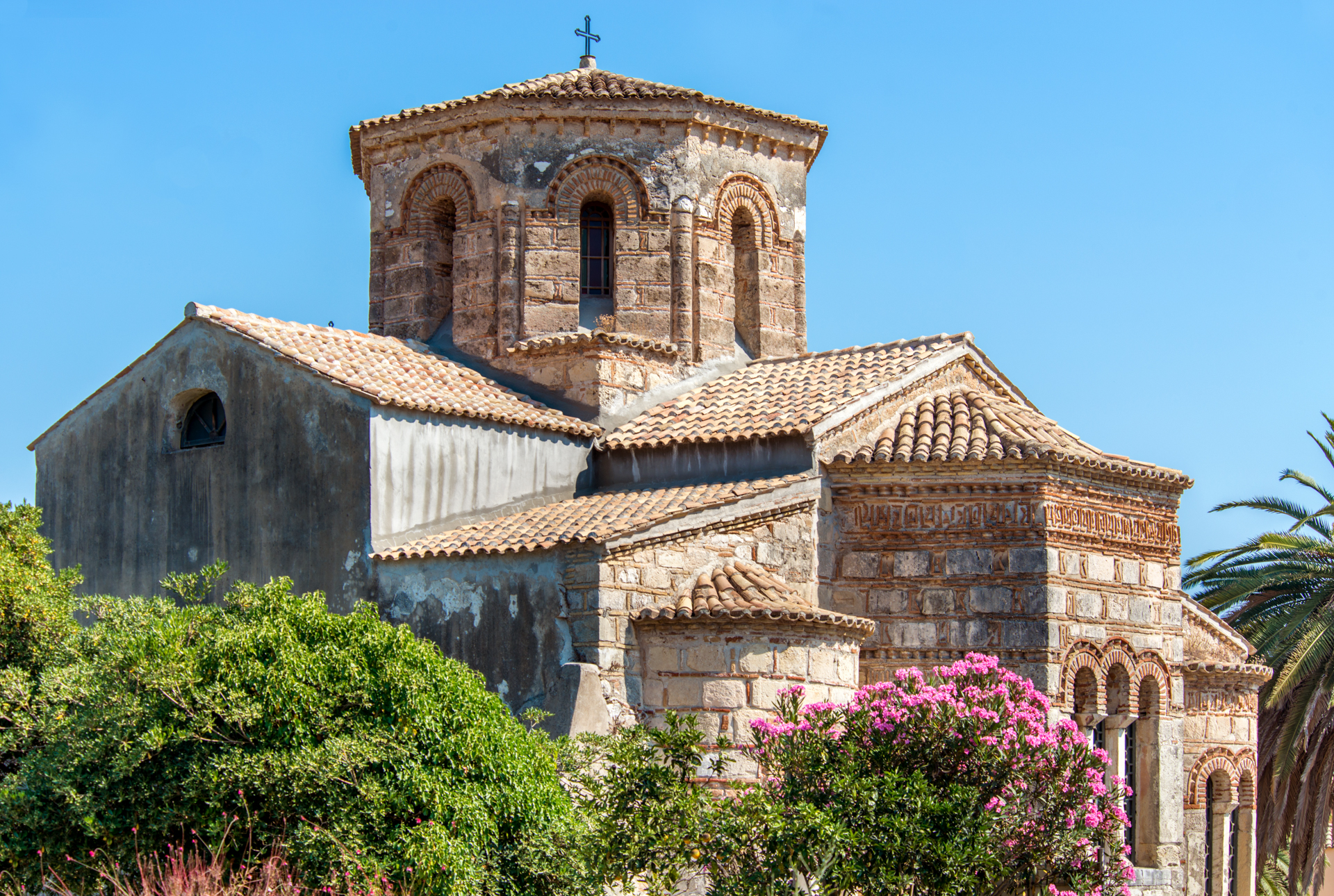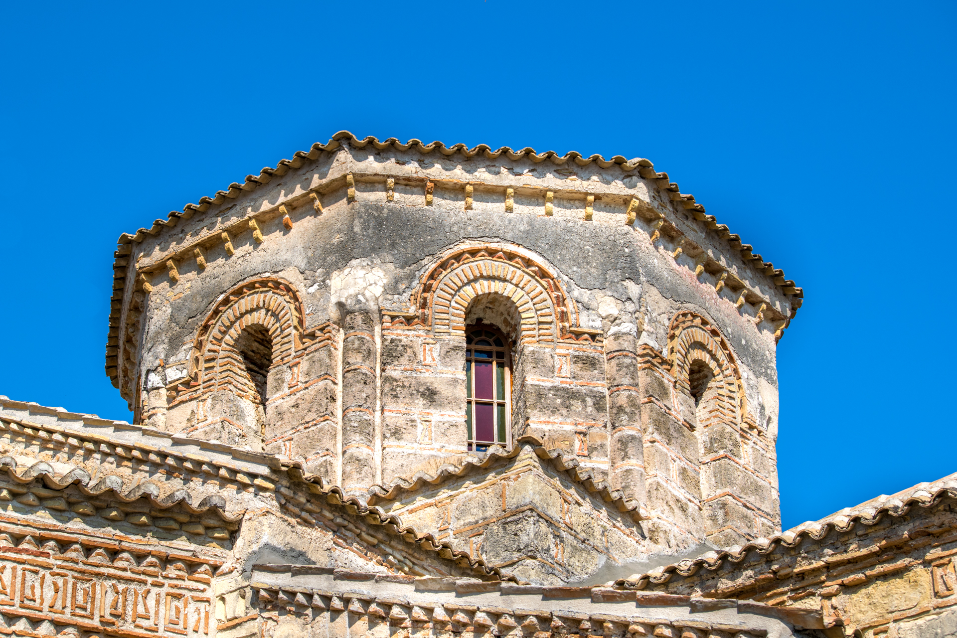 Είναι σταυροειδής εγγεγραμμένος με τρούλο που στηρίζεται σε τοίχους και δύο κίονες, μάλιστα αποτελεί ένα από τα παλαιότερα και καλύτερα διατηρημένα δείγματα αυτού του αρχιτεκτονικού τύπου. Οι τοίχοι του στο κατώτερο μέρος τους είναι κτισμένοι με μεγάλους πωρόλιθους, προερχόμενους πιθανότατα από τα ερείπια της αρχαίας Παλαιόπολης, που βρισκόταν στη γειτονική χερσόνησο του Κανονιού. Στο ανώτερο μέρος ακολουθούν το πλινθοπερίκλειστο σύστημα τοιχοποιίας διακοσμημένο με χαρακτηριστικά κεραμοπλαστικά σχέδια.