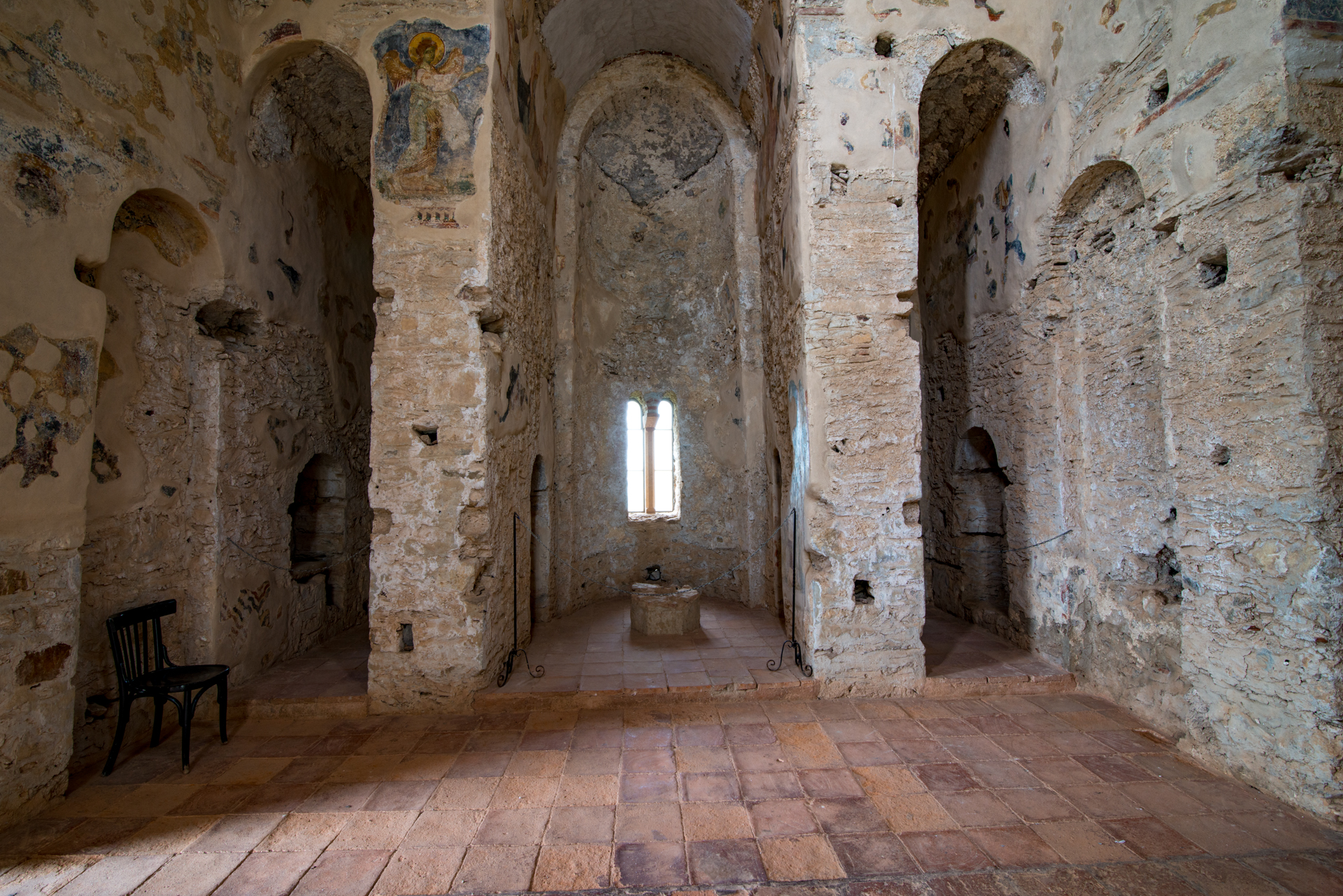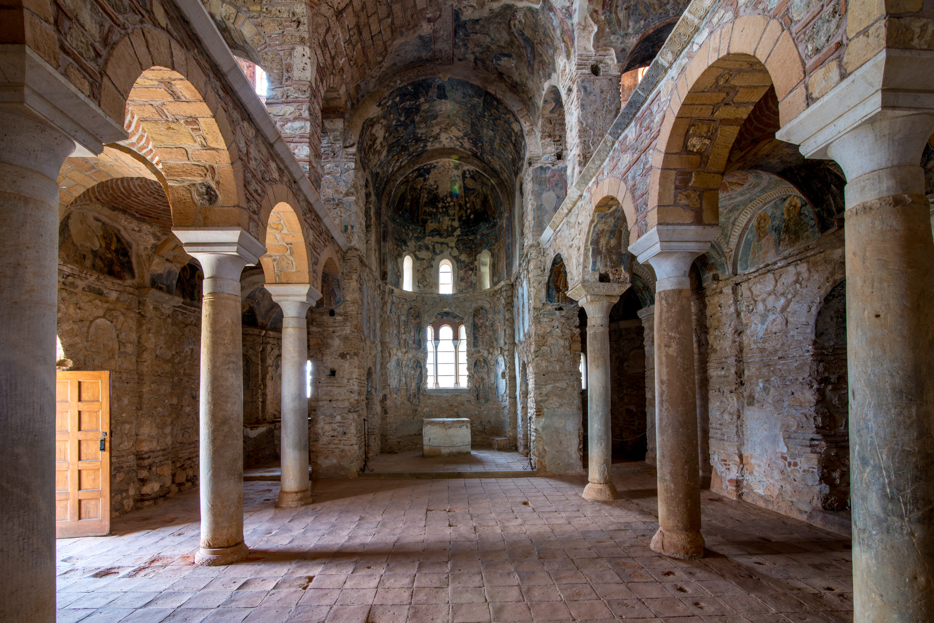 Στο συγκρότημα της μονής βρίσκονται δύο επιβλητικές εκκλησίες, από τις ωραιότερες του Μυστρά, ο ιερός ναός των Αγίων Θεοδώρων και ο ιερός ναός της Παναγίας της Οδηγήτριας, που λέγεται και Αφεντικό.