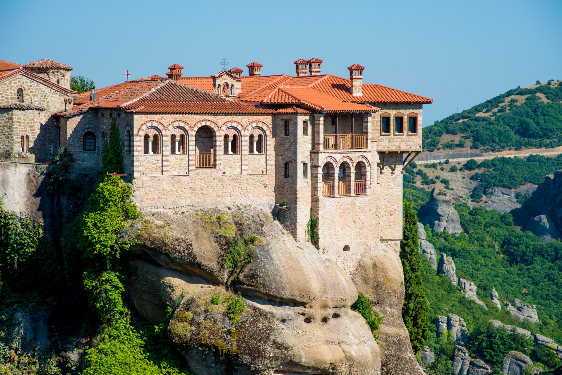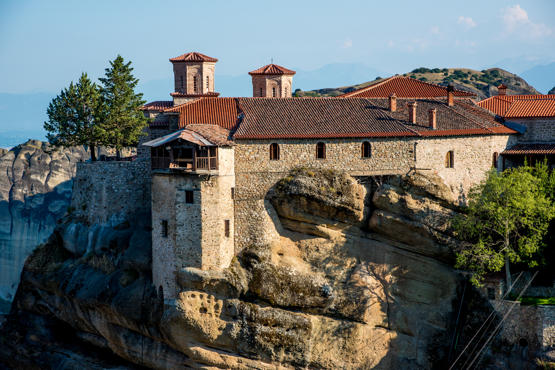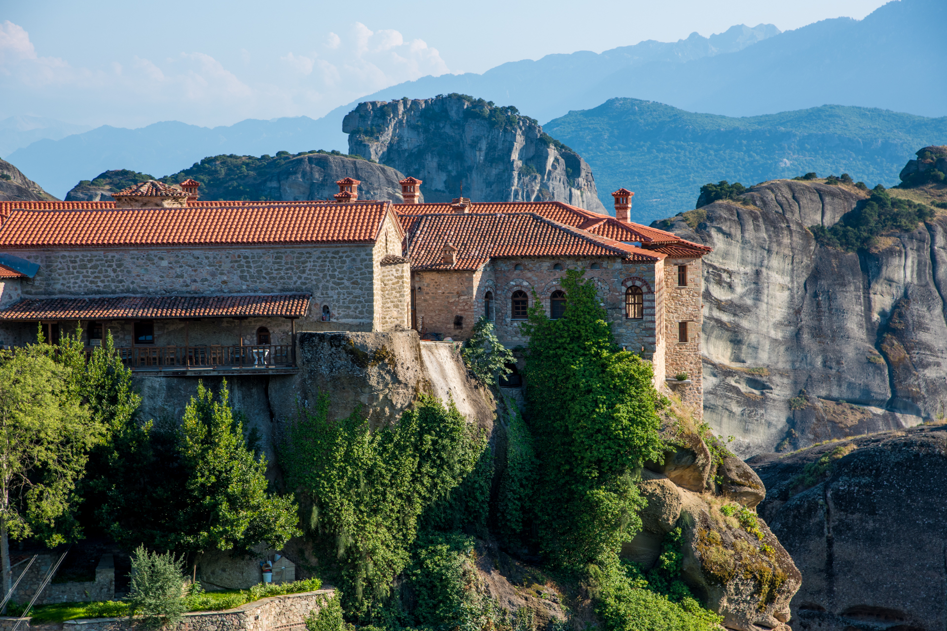 Απέναντι από τη Μονή του Μεγάλου Μετεώρου, στην κορυφή του λίγο μικρότερου, αλλά εξίσου επιβλητικού βράχου, δεσπόζει η Μονή του Οσίου Βαρλαάμ, η δεύτερη μεγαλύτερη των Μετεώρων, αφιερωμένη στη μνήμη των Αγίων Πάντων.