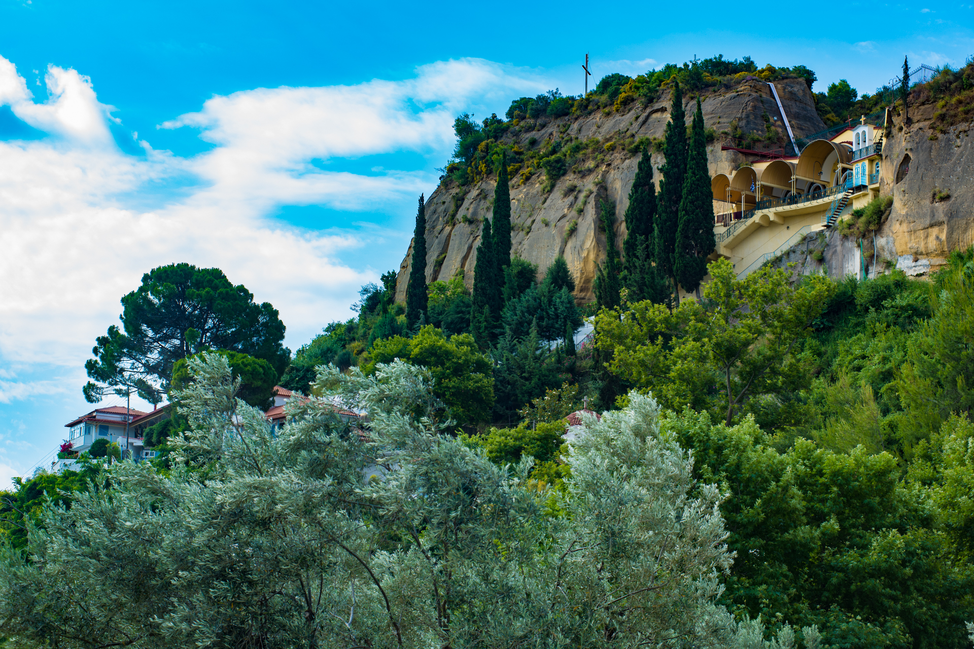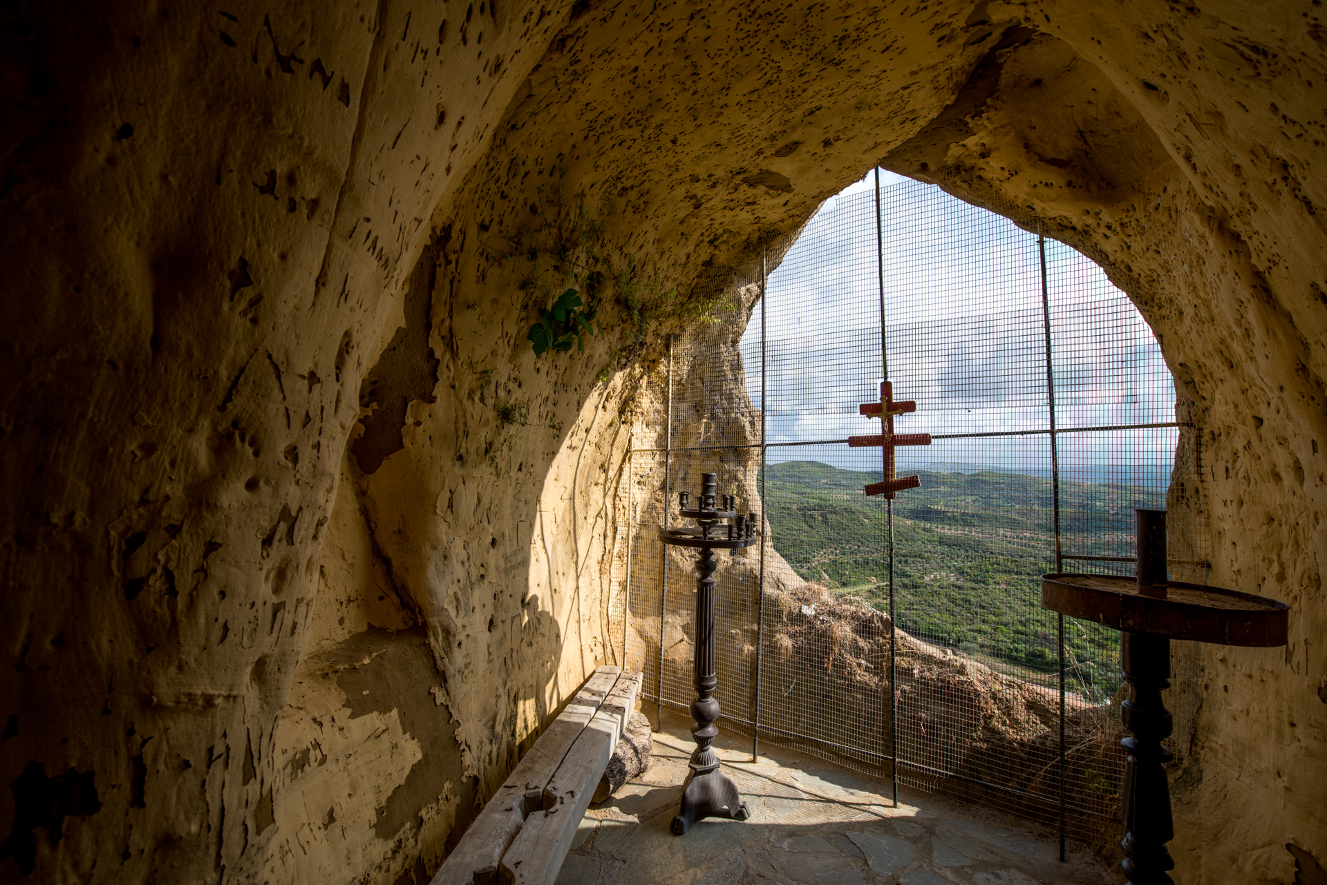 Το καθολικό της μονής είναι ναός διαμορφωμένος μέσα σε σπήλαιο. Το 1976 το σπήλαιο καταστράφηκε από κατολίσθηση και σήμερα έχει απομείνει μόνο ένα φυσικό κοίλωμα του βράχου, στα δυτικά του. Ο ναός έχει ανακαινισθεί πλήρως, έχει διαπλατυνθεί και έχουν προστεθεί μαρμάρινο τέμπλο και εικόνες βυζαντινής τεχνοτροπίας.