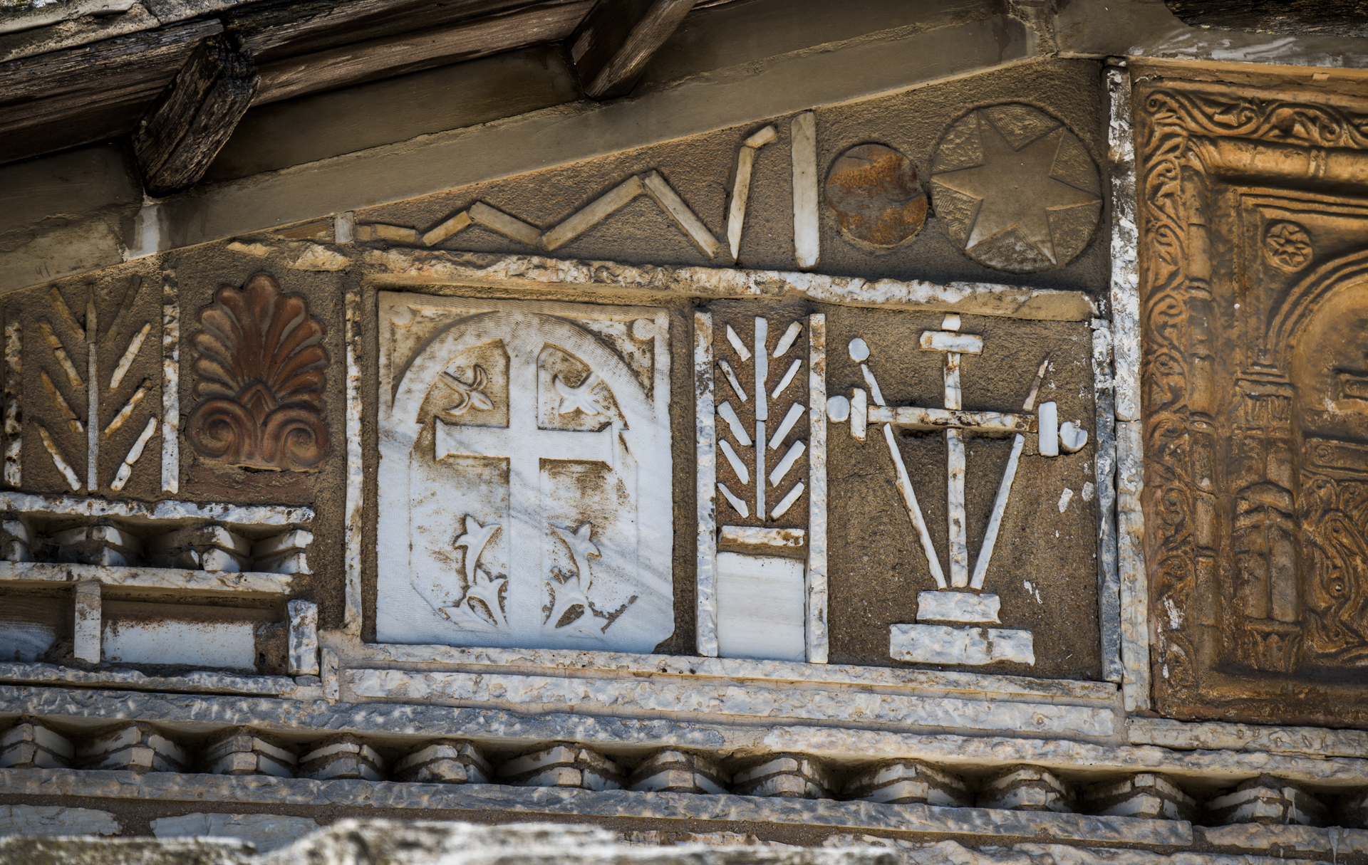 Η Αγία Τράπεζα στηρίζεται σε αρχαίο κίονα, ενώ άλλοι δύο κιονίσκοι βρίσκονται στο προαύλιο της κυρίας εισόδου. Επάνω στον ένα κίονα αναγράφεται με εσώγλυφη μεγαλογράμματη γραφή: «ΒΕΡΕΝΙΚΗ ΙΣΙΔΩΡΟΥ ΜΗΛΙΣΙΑ ΜΑΙΝΑΝΔΡΟΥ ΑΙΘΑΛΙΔΟΥ ΓΥΝΗ» και στον έτερο κίονα: «ΠΑ(…)ΑΣ ΔΗΜΑΡΧΟΥ ΠΑΛΛΗΝΕΩΣ ΓΥΝΗ».