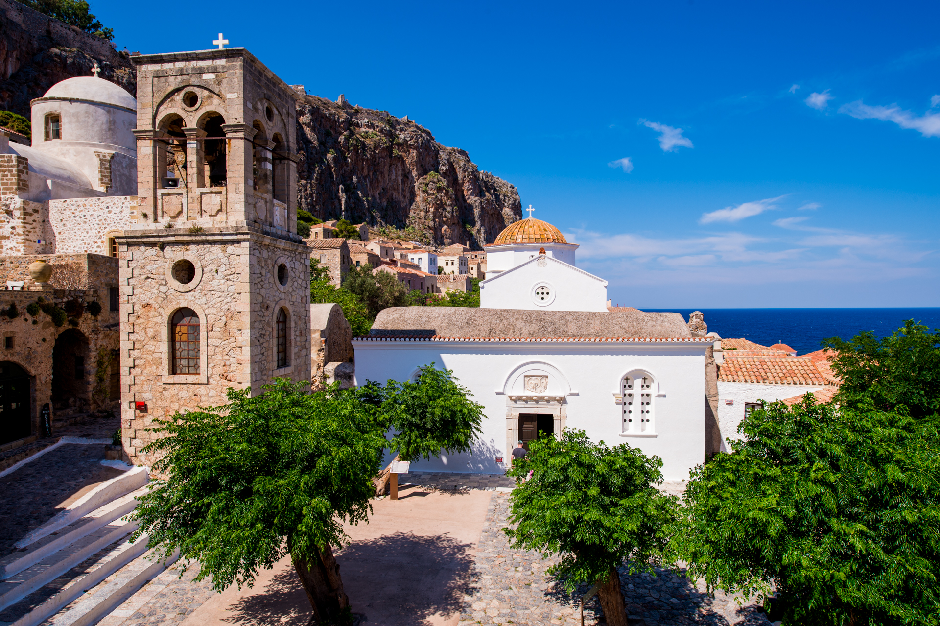 Στον χώρο της πλατείας, στην Κάτω Πόλη της Μονεμβασιάς, κυριαρχεί ο μεγάλος και εντυπωσιακός ναός του Ελκόμενου Χριστού, που θεωρείται ο παλαιότερος του βράχου.
