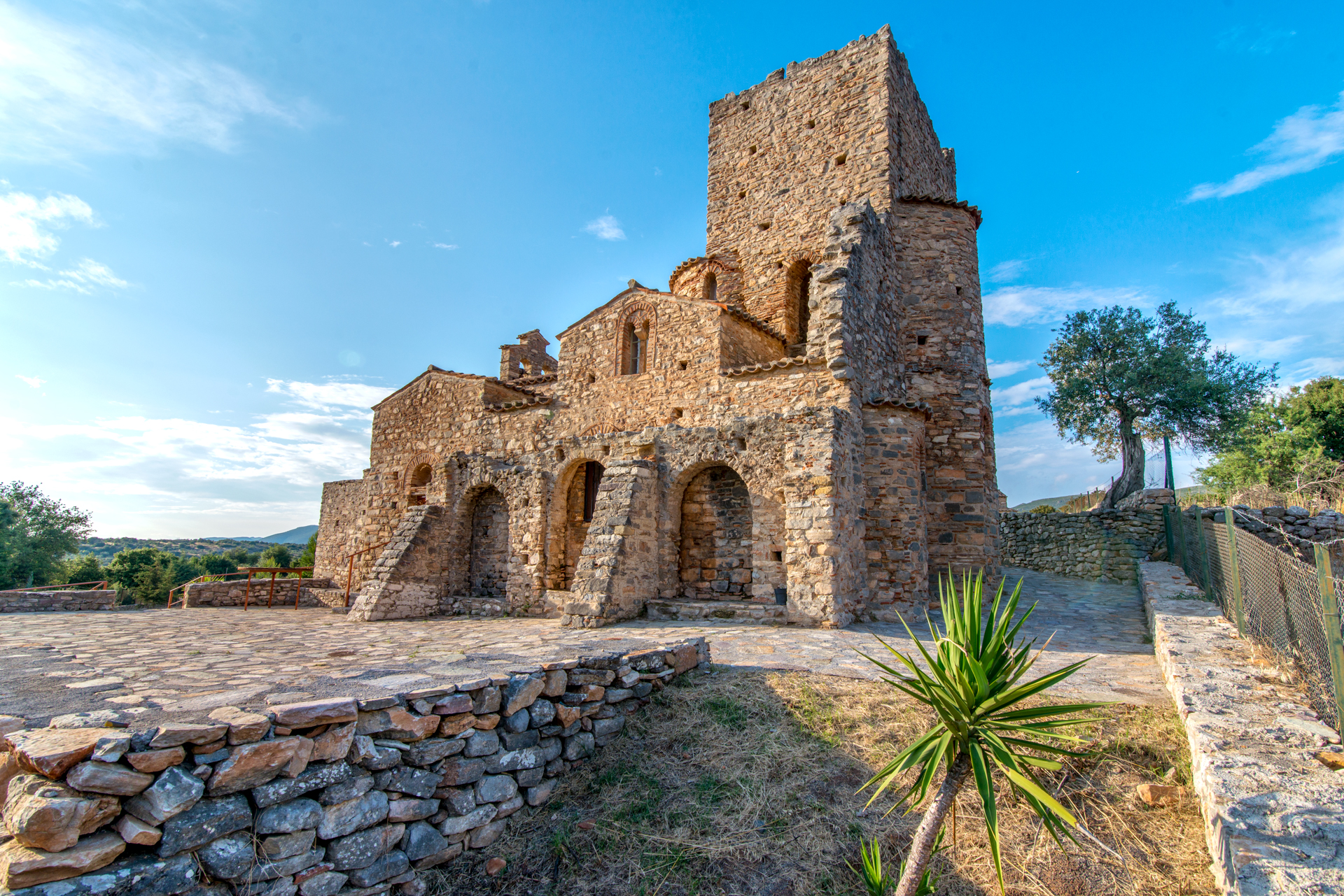 Οικοδομήθηκε στο τέλος του 11ου αιώνα και είναι πιθανόν να ανήκε σε μεγαλύτερο συγκρότημα ή μοναστήρι, όπως δείχνουν ίχνη θεμελίων στη νότια πλευρά του. Αρχιτεκτονικά ανήκει στον τύπο του σταυροειδούς εγγεγραμμένου ναού με νάρθηκα και ο τρούλος του στηρίζεται εσωτερικά σε δύο κίονες. Σε μεταγενέστερα χρόνια, πιθανώς στον 16ο αιώνα προστέθηκαν στη δυτική πλευρά του ο εξωνάρθηκας, η κινστέρνα και ο επιβλητικός οχυρός πύργος. Η ενίσχυση και οχύρωση του ναού αποδίδεται σε μοναχούς της γειτονικής Μονής των Αγίων Τεσσαράκοντα Μαρτύρων, που κατοικούσαν εδώ.