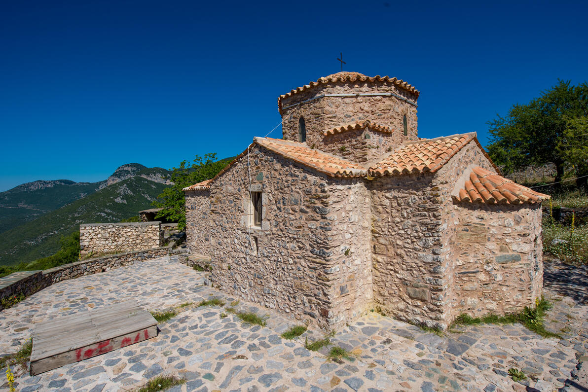 Στην κορυφή ενός μικρού λόφου με εξαίρετη θέα μέχρι τον Μεσσηνιακό κόλπο, νότια της Νέδουσας, στην περιοχή της Αλαγονίας, βρίσκεται η μονή που είναι αφιερωμένη στην Κοίμηση της Θεοτόκου και είναι γνωστή ως Μονή Μαρδακίου.