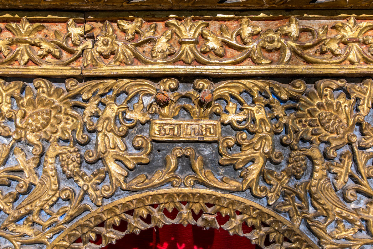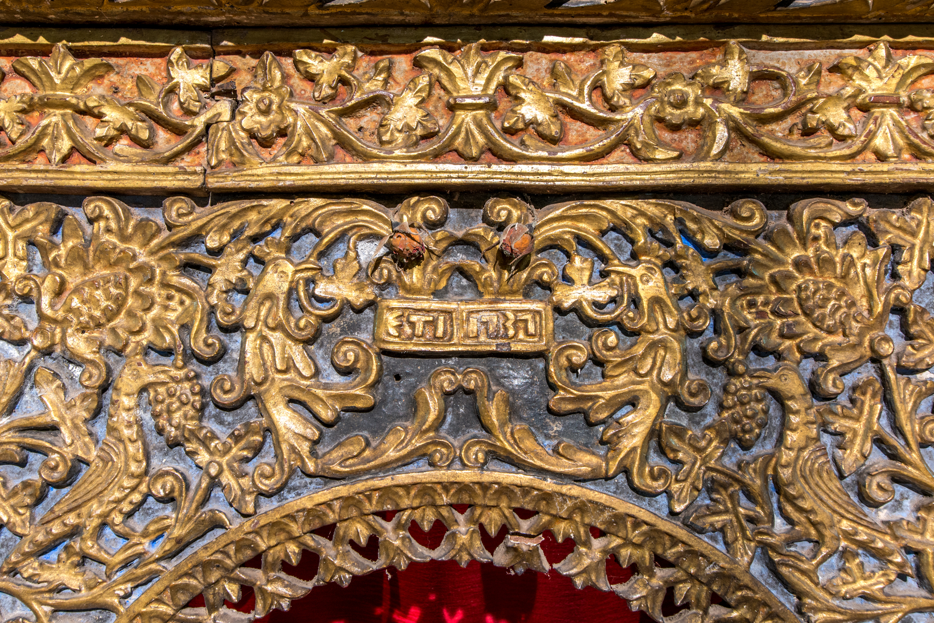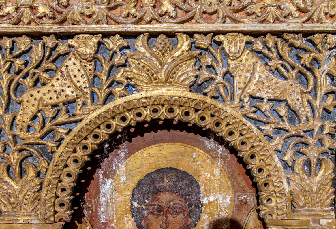 Στο εσωτερικό του διατηρούνται ενδιαφέρουσες τοιχογραφίες βυζαντινής τεχνοτροπίας, που ολοκληρώθηκαν το 1732, από τους ίδιους κτήτορες, όταν επίσκοπος ήταν ο Διονύσιος από τα Ιωάννινα. Αξιόλογο είναι το ξυλόγλυπτο τέμπλο, έργο του 1737, και οι εικόνες, που χρονολογούνται στο 1738. Αριστούργημα της ξυλογλυπτικής τέχνης είναι και ο πολυέλαιος, που θυμίζει αντίστοιχα έργα σε μονές του Αγίου Όρους, καθώς και το σμαλτοκέντητο ψαλτήρι - αναλόγιο με ελεφαντόδοντο.
