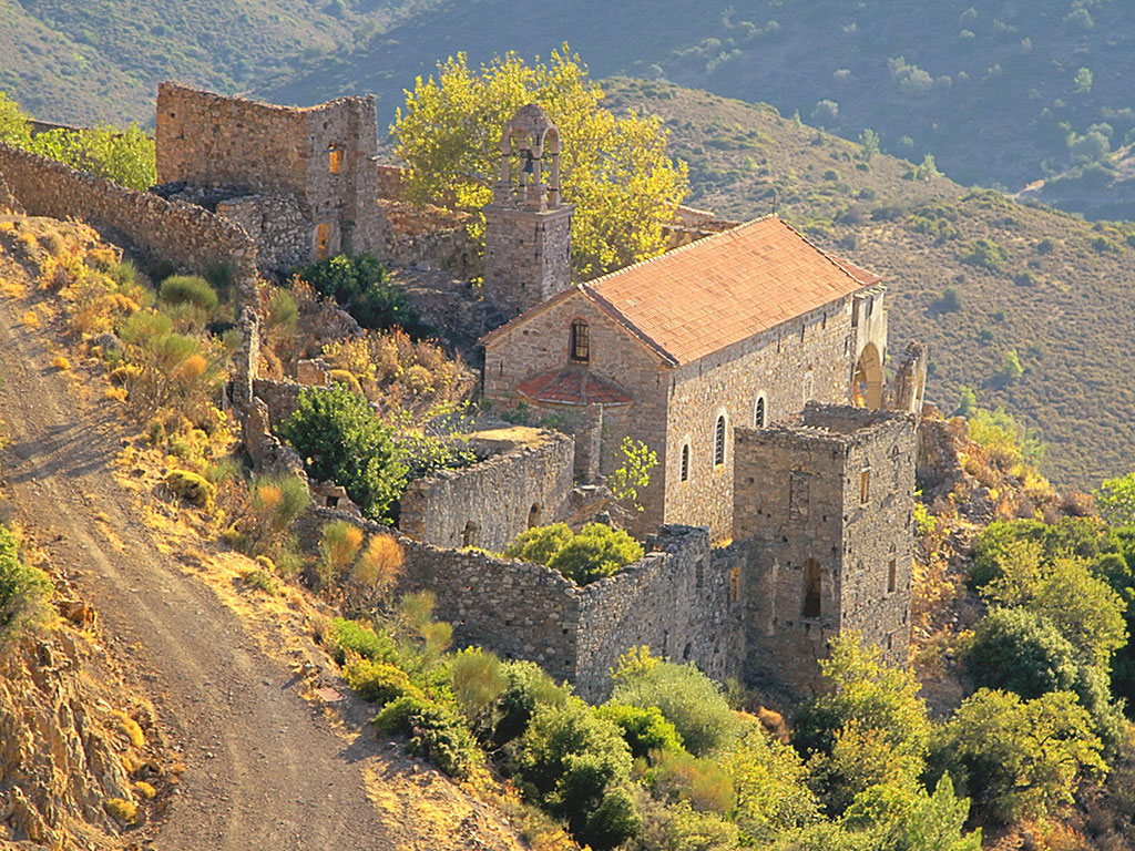 Στο γαλήνιο τοπίο της βορειοδυτικής Χίου, κοντά στο χωριό Διευχά, βρίσκεται ένα από τα σπουδαιότερα θρησκευτικά μνημεία του νησιού, η Ιερά Μονή Μουνδών. Είναι αφιερωμένη στον άγιο Ιωάννη Πρόδρομο και η ονομασία της προέρχεται, πιθανότατα, από την τοποθεσία Μουντά, κοντά στη Βολισσό, όπου βρισκόταν αρχικά, πριν μεταφερθεί στη σημερινή της, πιο απομακρυσμένη θέση.