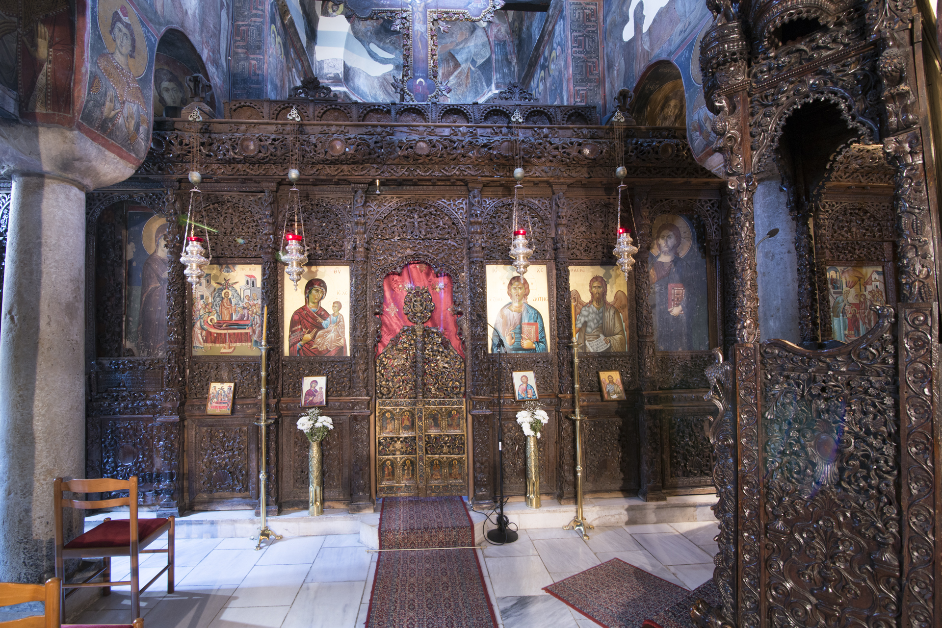 Το εσωτερικό του διακοσμείται με τοιχογραφίες του 14ου αιώνα, που αποδίδονται σε σπουδαίο καλλιτέχνη της μακεδονικής σχολής. Θαυμάσιο δείγμα ξυλογλυπτικής είναι το τέμπλο, που κατασκευάσθηκε το 1840 από τον Δημήτριο τον Μετσοβίτη, και η ξυλόγλυπτη θύρα της δυτικής εισόδου του ιερού. Γύρω από το καθολικό προσαρτήθηκαν κατά καιρούς παρεκκλήσια και προσκτίσματα, που κατεδαφίσθηκαν αργότερα. Το μόνο που διατηρείται σήμερα είναι το πρόσκτισμα του 1817 στη νότια πλευρά, μέρος του οποίου λειτουργεί ως παρεκκλήσι του Αγίου Νεκταρίου. Η μονή διαθέτει πολλά και σημαντικά κειμήλια, πλούσια βιβλιοθήκη, ξενώνα και μουσείο φυσικής ιστορίας. Είναι γυναικεία και εορτάζει στις 15 Αυγούστου και στις 6 Αυγούστου.