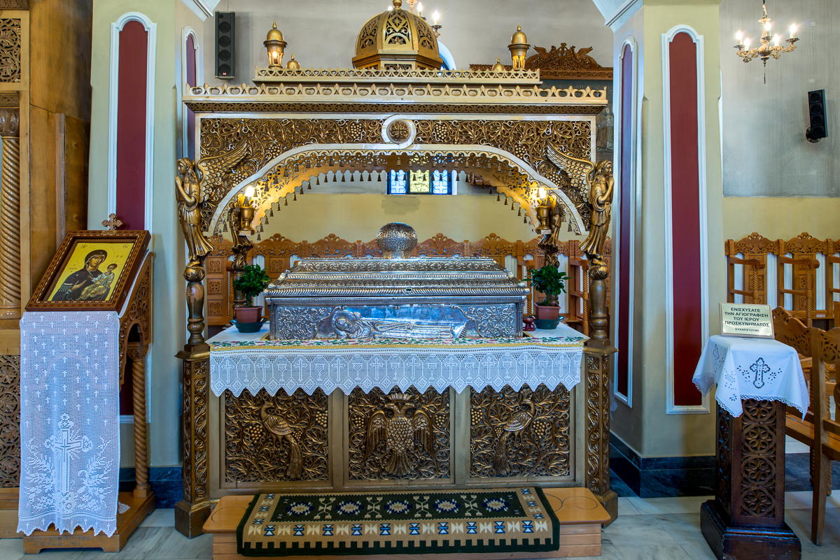 Είναι σύγχρονο, μεγάλων διαστάσεων μνημείο, νεοβυζαντινού ρυθμού. Πρόκειται για επιμήκη τρίκλιτη βασιλική, που στην ανατολική πελυρά έχει εγκάρσιο κλίτος με τρούλο και στη δυτική πλευρά δύο κωδωνοστάσια. Αποτελεί αντίγραφο του βυζαντινού ναού του Αγίου Γρηγορίου στην Καρβάλη της Καππαδοκίας και έχει χαρακτηριστεί ως ιστορικό διατηρητέο μνημείο. Στο εσωτερικό του κυρίαρχη θέση έχει το σκήνωμα του αγίου Γρηγορίου, που φυλάσσεται μέσα σε επιχρυσωμένη σαρκοφάγο. Εξωτερικά υπάρχουν ξενώνες για τη φιλοξενία των προσκυνητών.