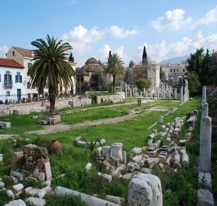 Κοντά στο Μοναστηράκι βρίσκονται τα ερείπια της Ρωμαϊκής Αγοράς της Αθήνας, που κτίστηκε στα τέλη του 1ου αιώνα π.Χ. με δωρεά του Ιούλιου Καίσαρα και του Αυγούστου. Ήταν ένα ενιαίο ορθογώνιο συγκρότημα με στοές και καταστήματα, που συγκέντρωσε την εμπορική δραστηριότητα της πόλης από την Αρχαία Αγορά. Στην ευρύτερη περιοχή της ήταν κτισμένο το Ωρολόγιο του Κυρρήστου με τις ανάγλυφες απεικονίσεις των ανέμων, το Φετιχιέ Τζαμί, καθώς και ο μεταγενέστερος ιερός ναός των Ταξιαρχών και της Παναγίας Γρηγορούσας. Δίπλα στο συγκρότημα σώζονται τα ερείπια της Βιβλιοθήκης, του πιο λαμπρού οικοδομήματος που κατασκεύασε στην Αθήνα ο Ρωμαίος αυτοκράτορας Αδριανός, τον 2ο αιώνα.
