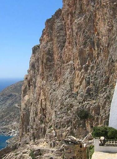 Σκαρφαλωμένο στα βράχια, τριακόσια μέτρα ψηλά από την επιφάνεια της θάλασσας, το πάλλευκο μοναστήρι της Χοζοβιώτισσας ατενίζει για περισσότερα από 900 χρόνια το γαλάζιο του Αιγαίου, αποτελώντας ένα μοναδικό μνημείο πίστης.