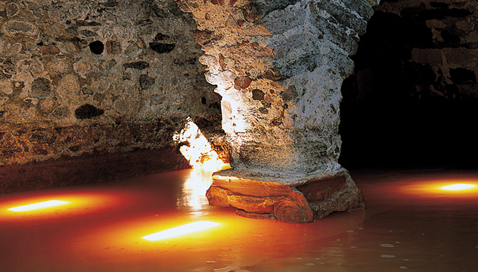 At Gera Bay, 6,5 kilometers from the city of Mytilene on the road to Agiasos, we encounter the thermal springs of “Therma”. They are excellent baths, where the waters run headlong into two separate pools through marble faucets. He landscape is enchanting and the water temperature is ideal providing the opportunity to the bathers to enjoy the therapeutic qualities of the spring.
