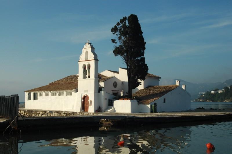 Le Monastère a été construit au XVIIe siècle. L’îlot sur lequel il est construit est à tout juste 300 m de la côte. Le visiteur peut y louer un bateau pour visiter l’île de Pontikonissi.