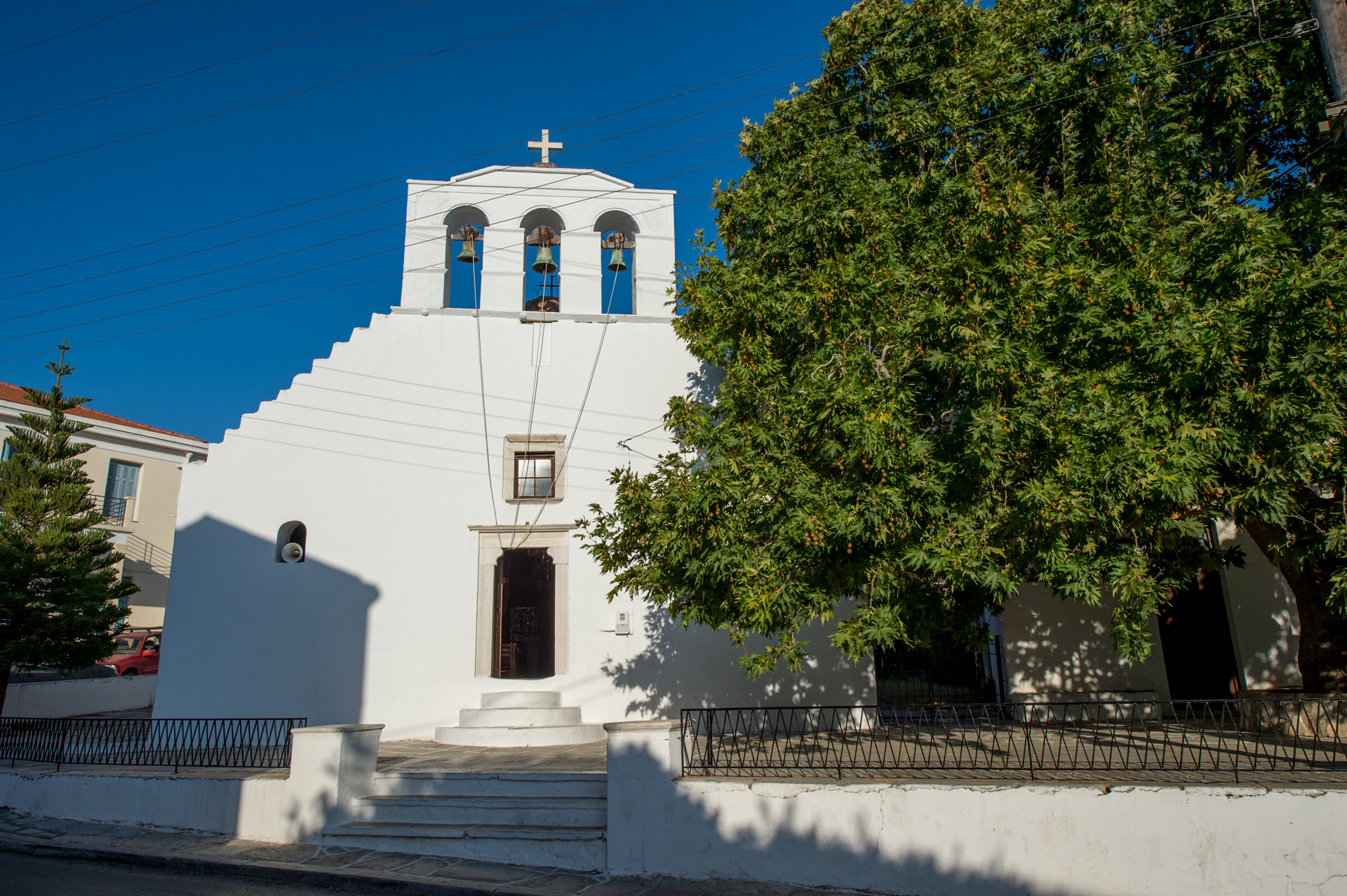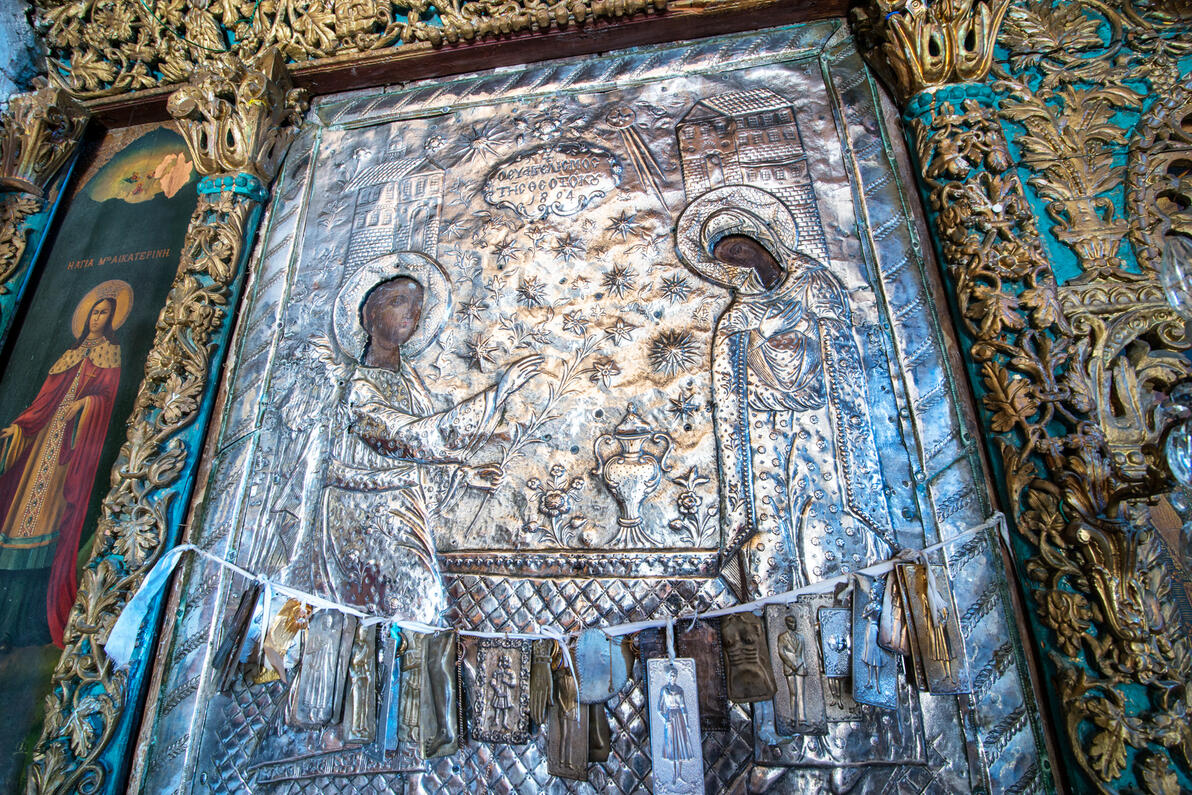 В деревне Халки в Тригее центральной части Наксоса находится храм Богородицы Первопрестольной (Панагия Прототрони), самая крупная церковь острова. Это был епископальный храм, посвященный Благовещению Богородицы.
